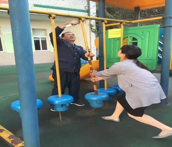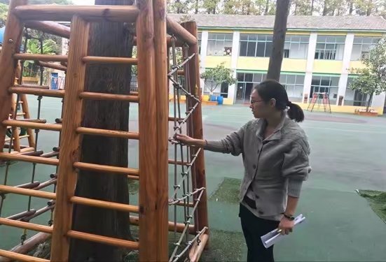 楼梯围栏、操场大型玩具、体育活动器械等进行了全面检查