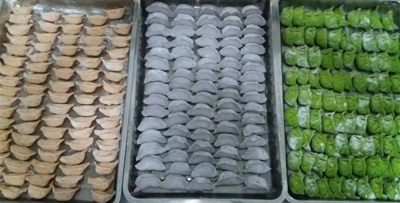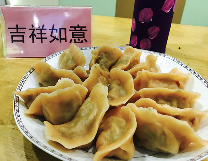 片刻过后一盘盘热气腾腾的饺子端上了桌子,等着大家品尝了。虽然饺子有大有小形状各异,但是并不影响大家吃饺子的快乐。