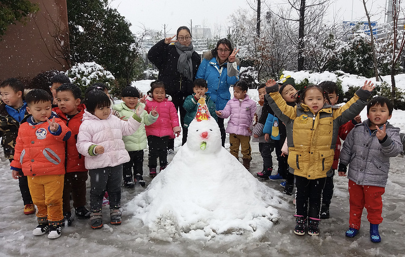 为了暂时留住这美好的景象,在清扫之余,老师们把积雪堆积起来变成一个可爱的大雪人。户外活动时,孩子们纷纷来和雪人合影,看着孩子们可爱的笑脸,老师们真心的觉得再多的辛苦都是值得的。