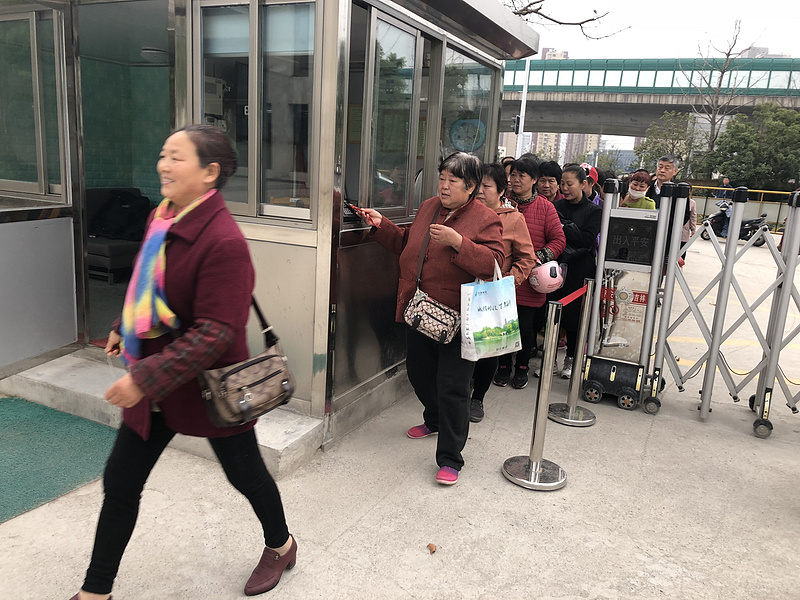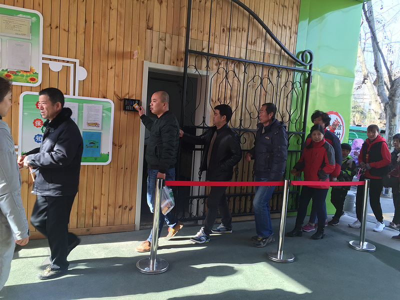 家长刷卡入园接孩子