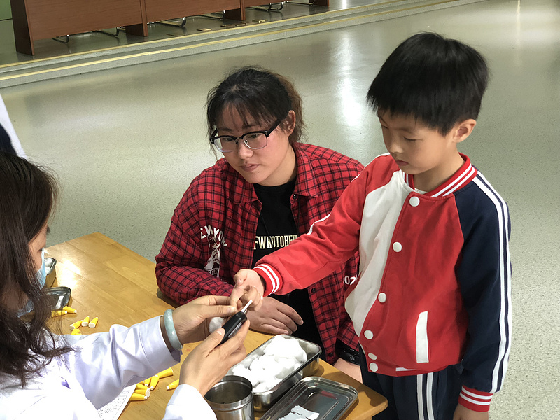 本次体检的项目有测量身高、体重、视力、心肺听诊、牙齿检查,并现场进行血色素检测等。小朋友们在班级教师的组织下,安静地排好了队,有序的接受检查。医生们分工明确,态度温和,对每一位幼儿的检查都做了详细的记录。遇到怕采血的幼儿,老师会很亲切地抱起孩子,用鼓励、表扬的方式给予孩子们心理疏导,积极营造轻松的检查氛围,孩子们都很勇敢的完成采血过程,整个体检过程井然有序。