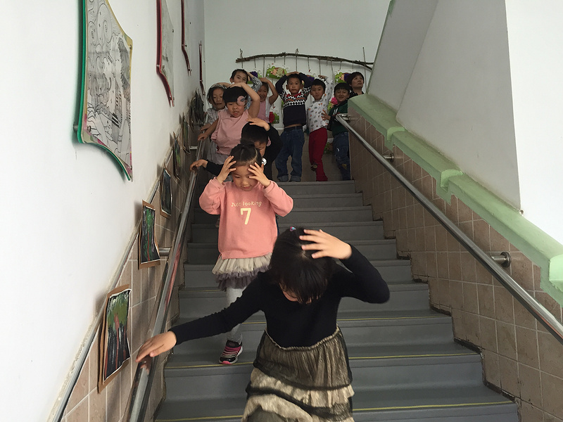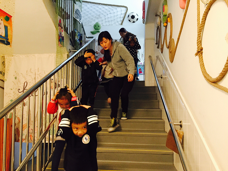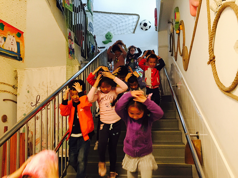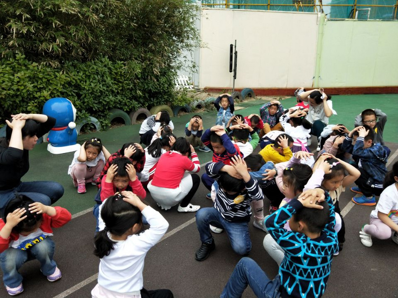 原来,这是一场地震逃生演习。