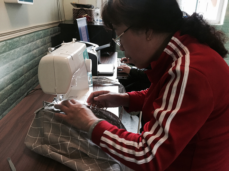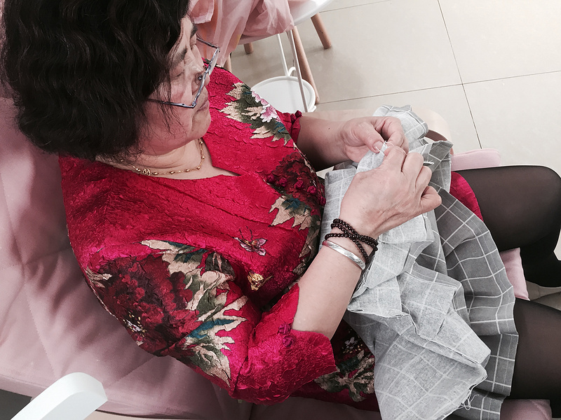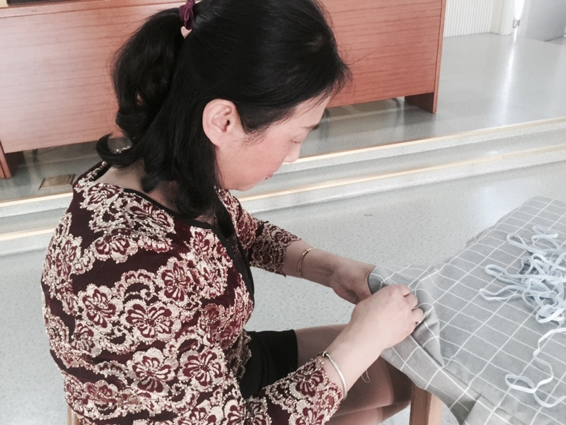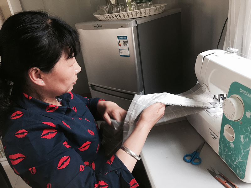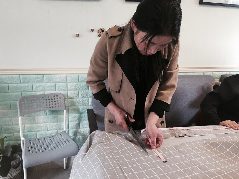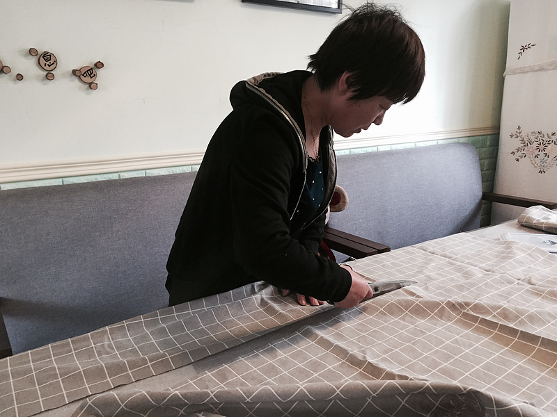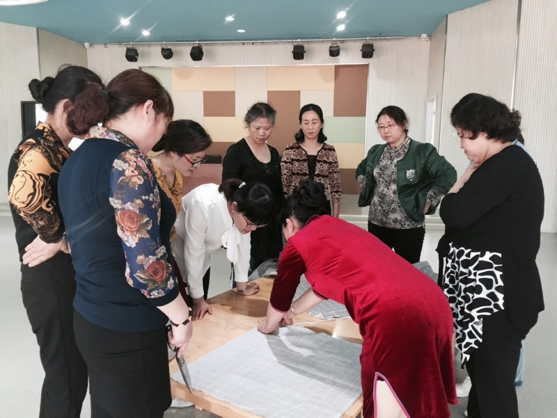 活动开始,大家认真测量与桌面大小合适的桌布,娴熟地进行裁剪,剪刀在手中灵活转动,剪出了桌面、剪出了桌边。接着按照自己设计的桌布方式,用缝纫机进行卷边、缝合。做好后拿着自己的成品在桌面上试试大小,看看是否移动,感觉大的用松紧带再进行二次加工,线针在保育老师手上不停的上下飞舞。