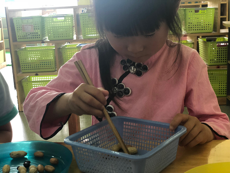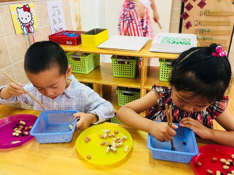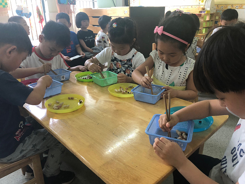 中班下学期开始,我们就用筷子吃饭了。在班级区域游戏中,老师们也投入了“筷子夹夹乐”的游戏,经过了近一个学期的练习,我们来小试一下身手吧!