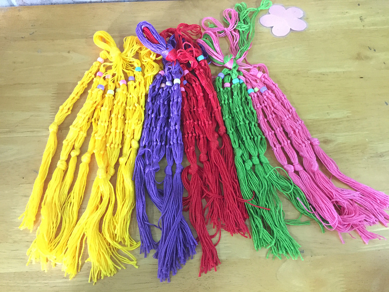 看,各种漂亮的五彩鸭蛋络子准备好,就等着装鸭蛋啦!