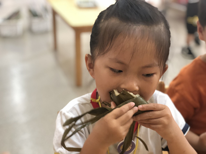 自己的粽子自己剥,咦?还没剥完就迫不及待地大口大口吃起来啦,请问,啥味道啊?