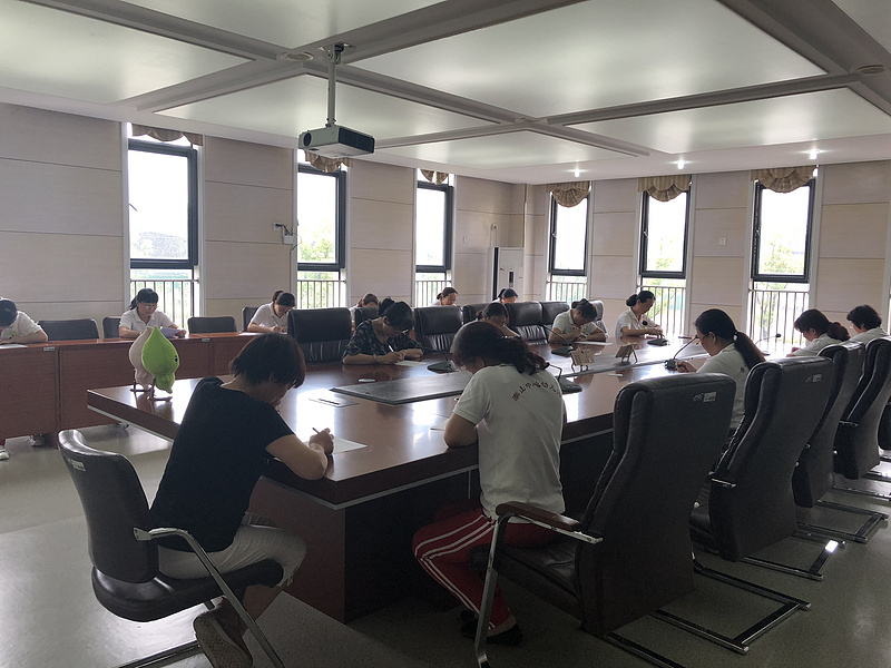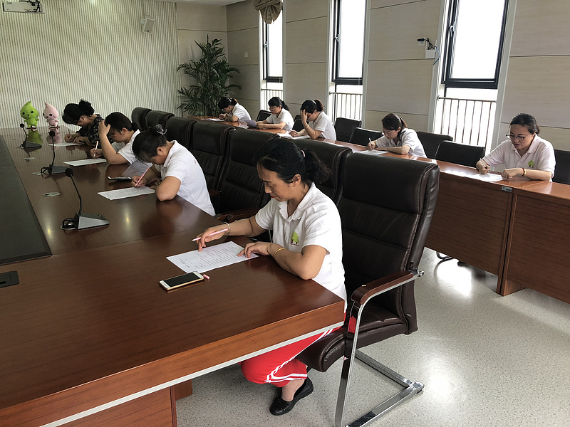 本次竞赛分为两个环节:必答题、竞答题。保育教师要先通过笔试后再进行竞答。看,她们认真答题,用不一样的形式展现自己的风采。