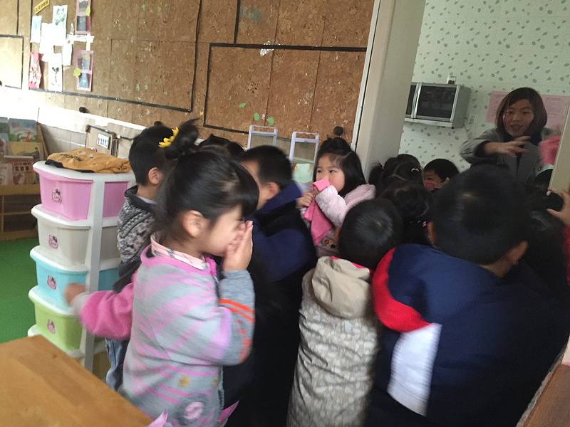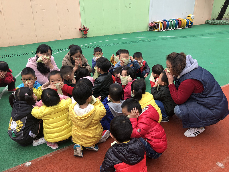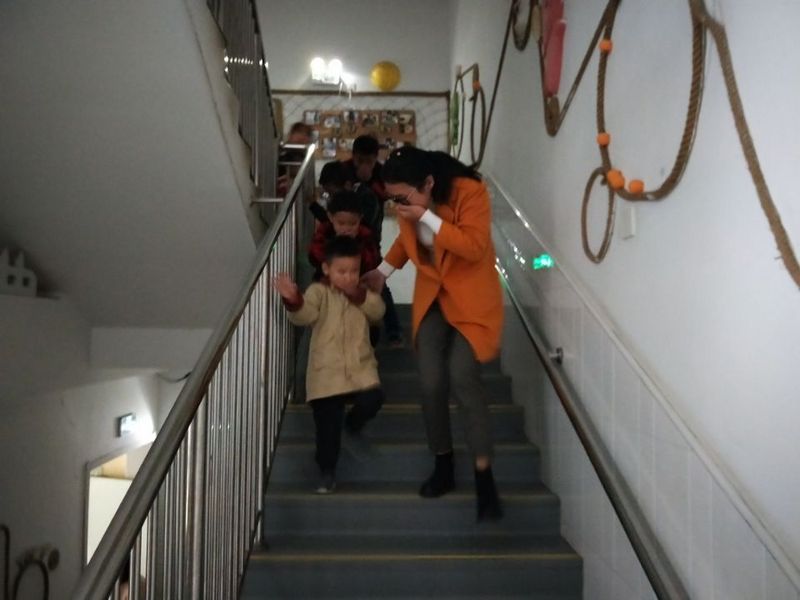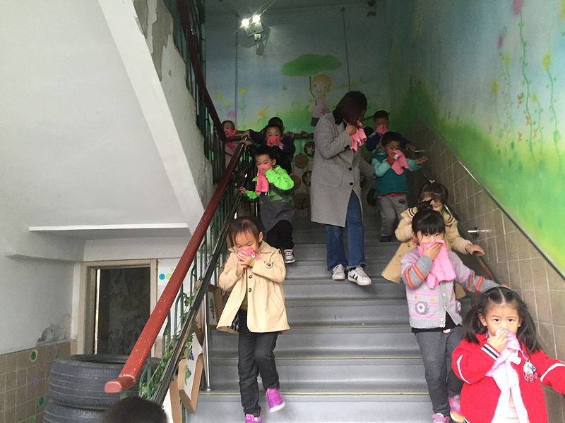 11月8日下午15:05分,铃铃铃……一阵警铃声响起,班级老师立即放下手中物品,教师们分工明确迅速组织幼儿、打湿毛巾、分发毛巾给幼儿,告诉幼儿不要慌张,跟着老师用湿毛巾捂住口鼻,弯腰小步快走,分两道楼梯迅速且有序下楼。