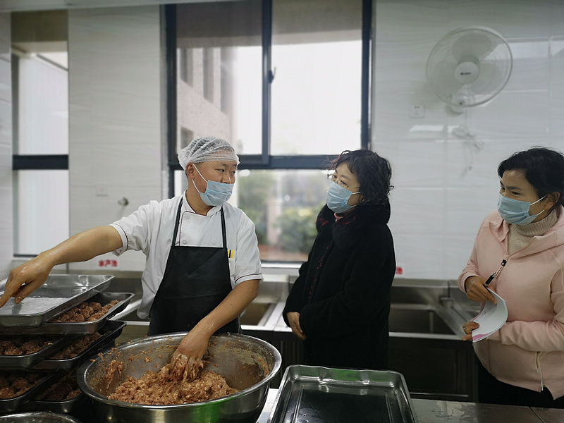 专家们来到食堂,对食堂内的环境卫生、食物留样、餐具消毒等进行一一检查。