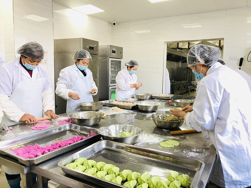 只见师傅们取皮,放馅,捏成型,动作娴熟,一气呵成。