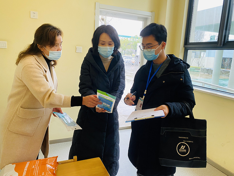 在韩园长、潘园长的陪同下,检查组来到隔离室,检查隔离室内防控物资是否齐全,各项应急预案是否完善。