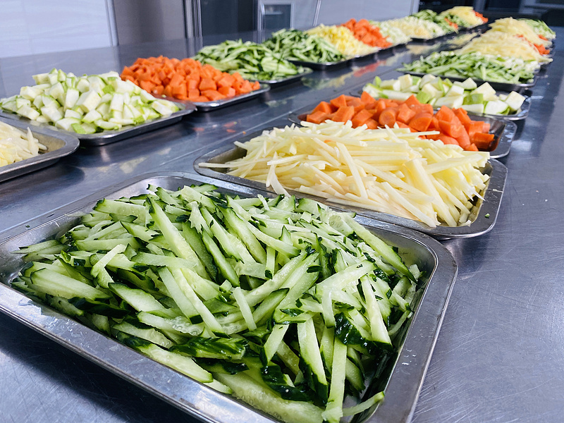 扎实的刀工是幼儿园食堂人员必备的业务能力之一,为了进一步提高食堂人员的专业技能,促进幼儿食物加工的精细化和规范化,充分调动食堂人员工作的积极性, 4月14日下午,我园举行了食堂人员刀工技能竞赛活动。
