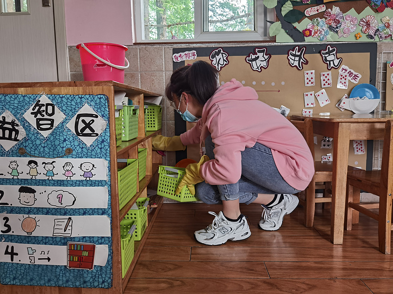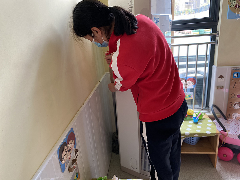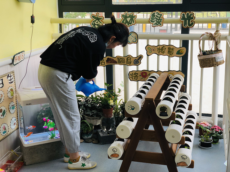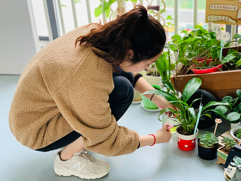 自然角是孩子们亲近自然的场所之一,也是蚊虫的藏身之处,每天修剪、清理,防止蚊虫滋生。
