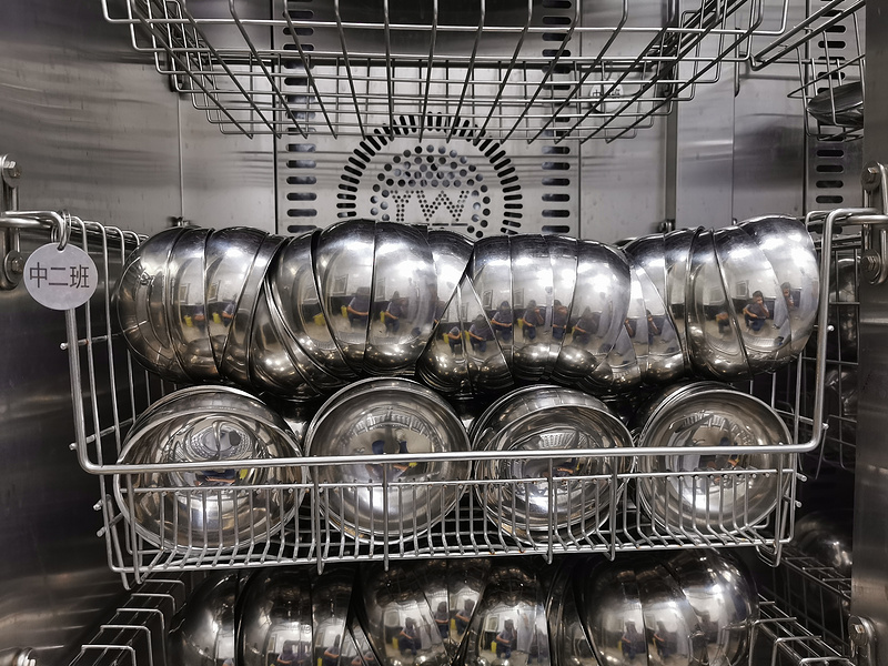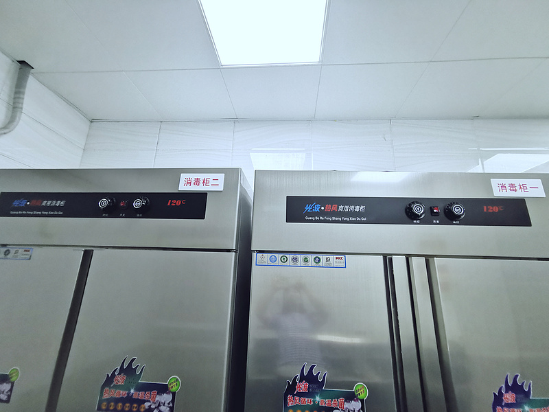 餐具、容器清洗干净摆整齐,高温消毒后方可使用。