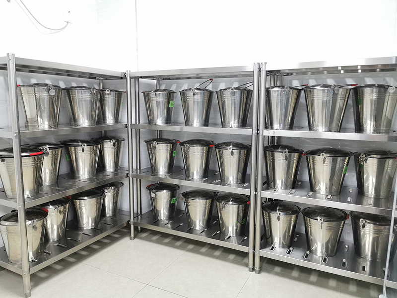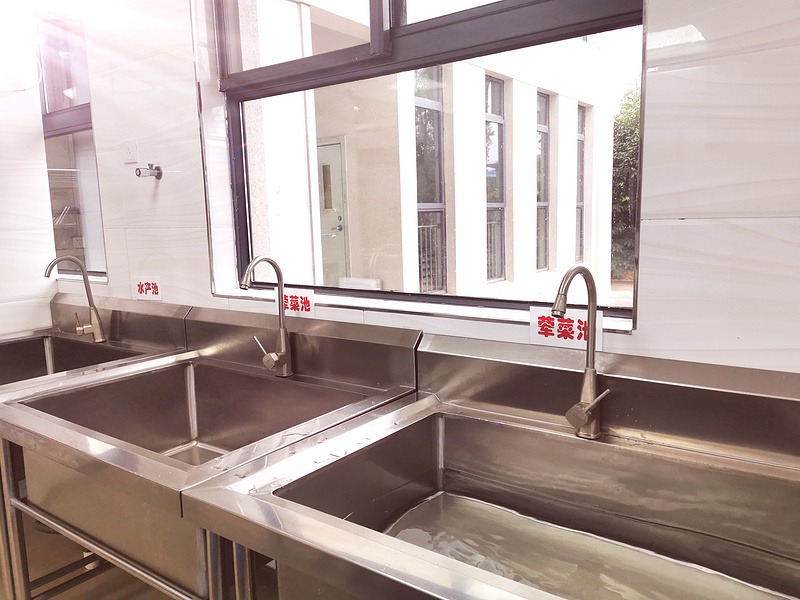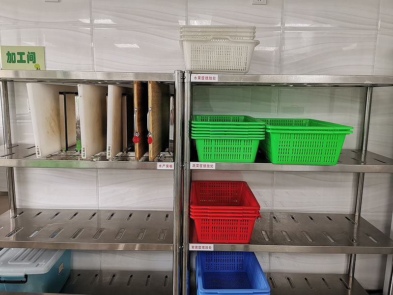 荤素食品分池清洗,刀板、容器等分类标记,定位存放。