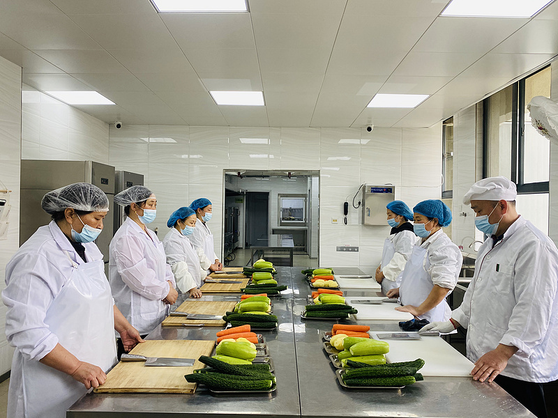 定期组织食堂人员进行业务培训及技能比赛,提高专业技能;不断推出新制菜品,丰富幼儿食谱。