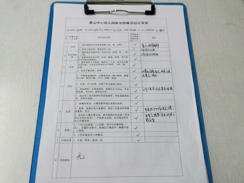 家长代表进园参与伙委会及陪餐活动,认真记录评价,并提出中肯意见。