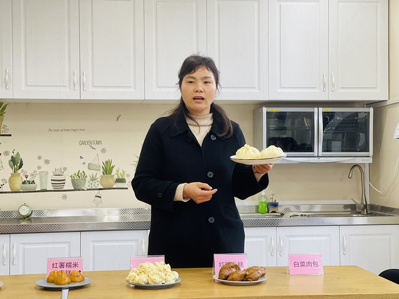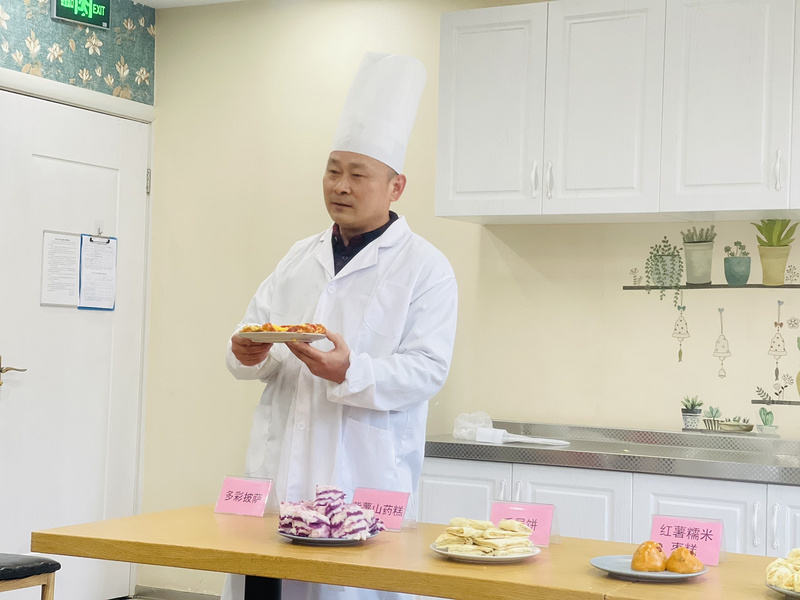 食堂人员不但会做还会说,他们对自己制作的点心从营养到制作过程一一进行了讲解,每个点心都有自己的特色。