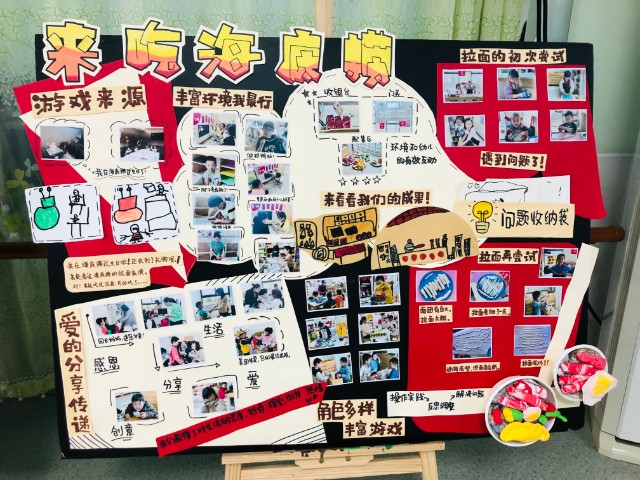 幼儿的经验来源于生活,吴老师班的海底捞话题就这样展开了。在老师的引导下,幼儿开始商量美食,共同制作菜单、价格表、装饰环境,并学会了有序的进行游戏。在遇到问题时,善于发现的老师也积极的带领幼儿进行分析和解决。幼儿在海底捞游戏中获得了对生活的态度:好奇、探究、向往、热情,获得了驾驭生活的能力:自主动手、创造生活,获得了理解生活的思维方式:合作、分享、尝试、发现、突破。