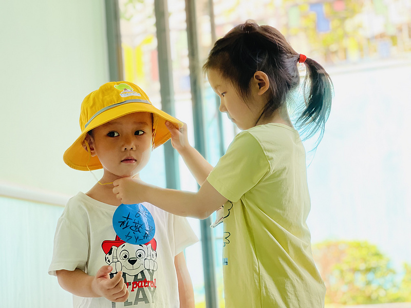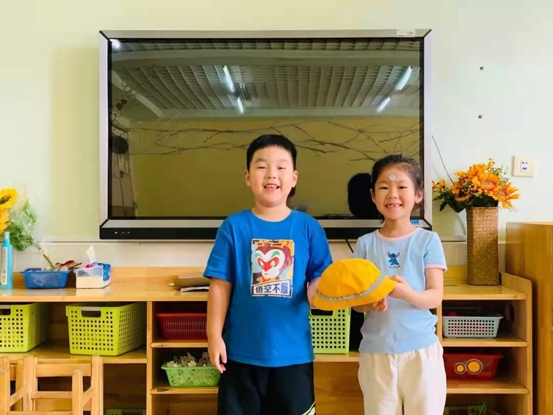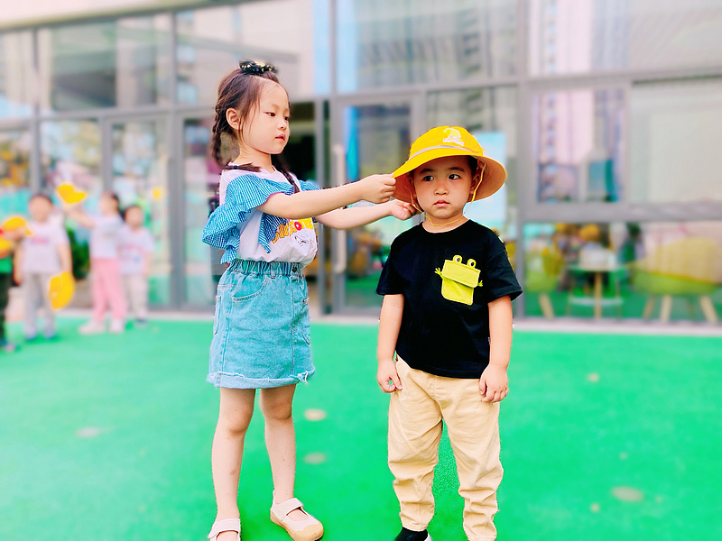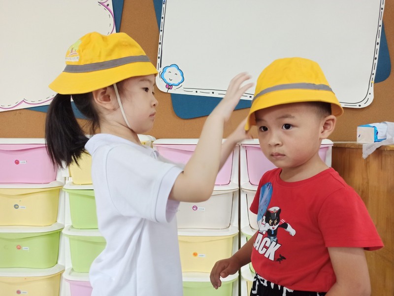 仪式开始,哥哥姐姐们把一顶顶象征着安全的小黄帽戴在了弟弟妹妹的头上,将安全的意识理念传递给他们。戴上小黄帽,宝贝们便是幼儿园里最萌的风景线。