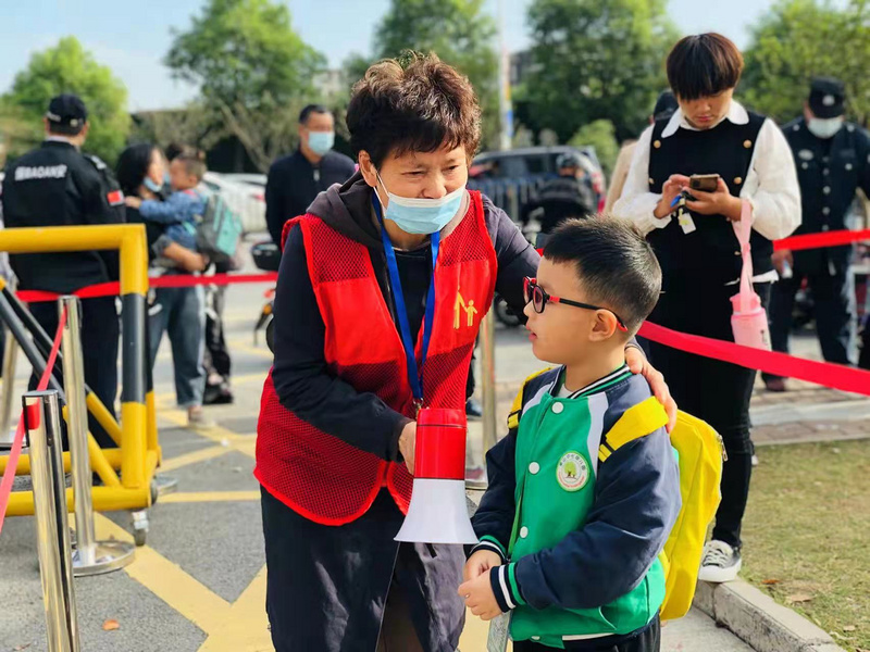 孩子平安,是每一位家长对孩子最大的牵挂,孩子们的安全也是幼儿园工作的重中之重。十月的天气,微微寒意已来到南京。早上8:00,泰山中心幼儿园门前,一个靓丽的身影在人群中忙碌着,她身穿红色马甲,手拿扩音喇叭,指挥家长有序停靠车辆,帮着孩子打开车门,背上书包,护送孩子有序入园,并且耐心地劝导家长即送即走、文明接送。她就是我们大一班李又天小朋友的奶奶。