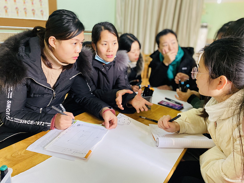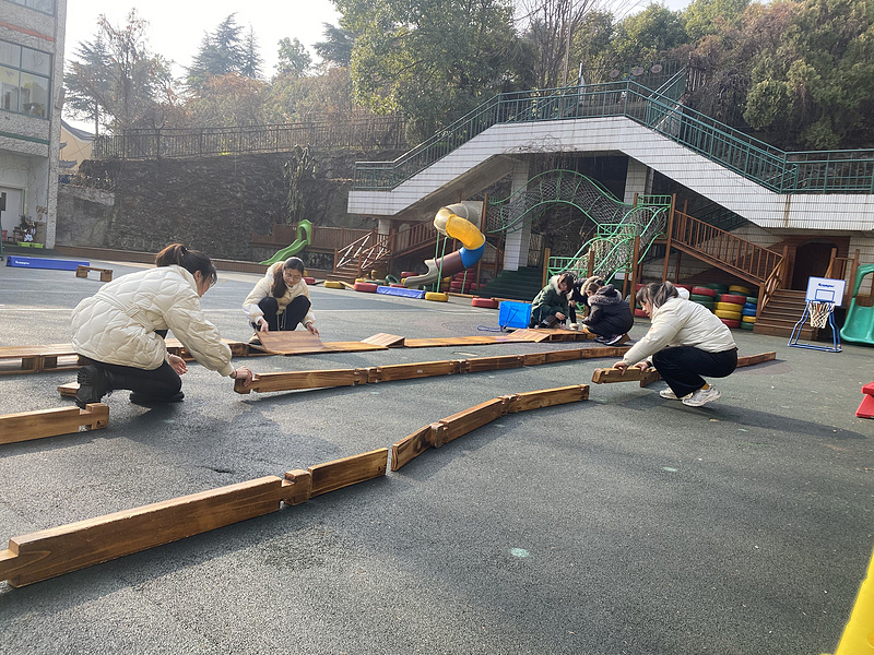教师们在操场上认真地对现场进行观摩、记录与思考,同时也在教研氛围中提升了发现问题、解决问题的能力,在观点表达、思维碰撞的互动中提高了团队的协作意识以及搭建能力,从而做到了“乐研”、“善言”。总之,学无止境,勇于反思,我们泰幼的教师将在不断建构教研的道路上砥砺前行!