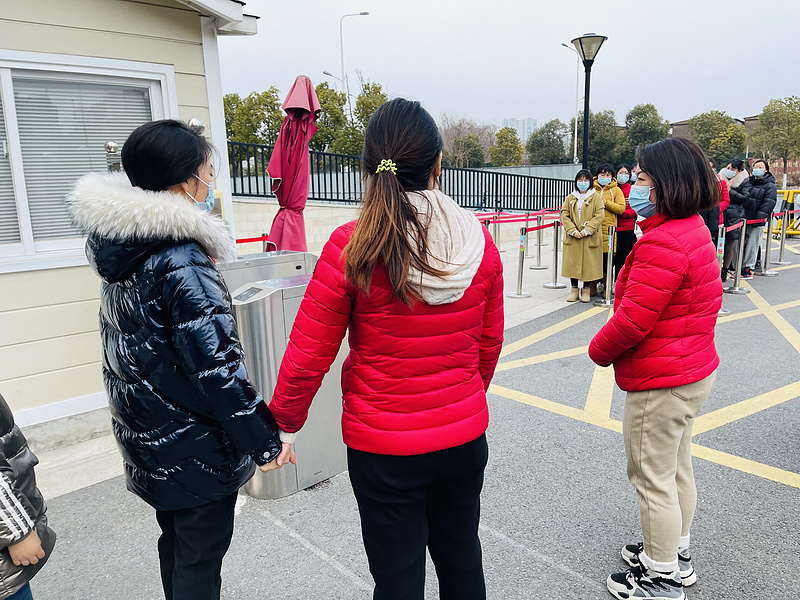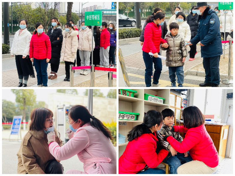 学校大门是校园疫情防控的第一道防线,把好校园第一道关卡至关重要。幼儿持健康卡,进行红外线体温检测正常后进入园区进行晨检。在检测过程中,如出现幼儿体温异常,学校启动应急预案,立刻带至临时隔离点,由值班领导进行水银体温计复检,并询问家长近期有无接触史、中高风险地区旅居史等情况,做好记录,告知保健老师。上报区教育办及疾控部门并安排学生就医,并做好学生追踪工作。