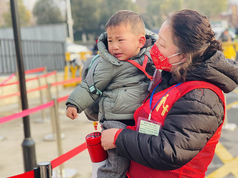 “宝贝,今天不哭了,奶奶抱你进幼儿园好不好?”