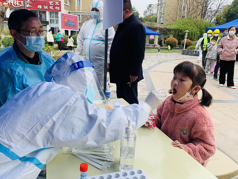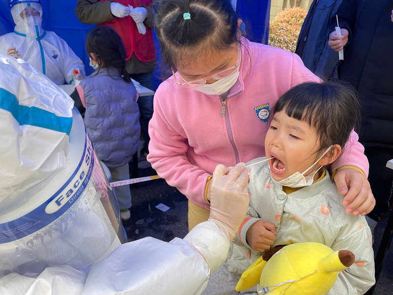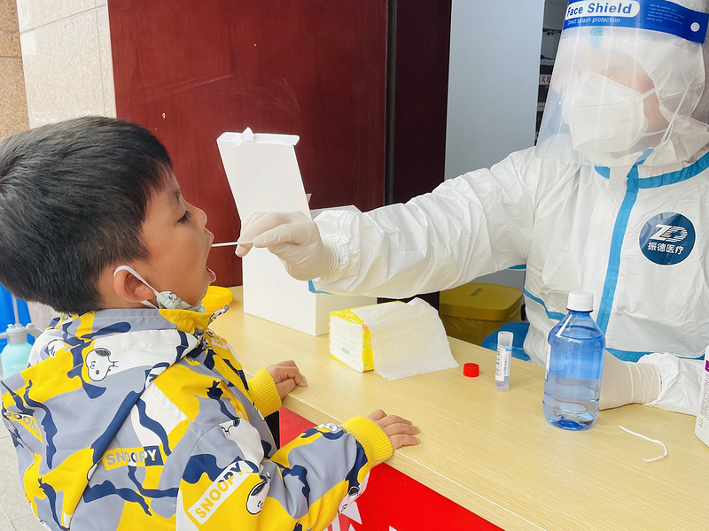 勇敢“疫”刻,尽管孩子们有些紧张和害怕,但还是积极张大嘴巴,配合医护人员进行检测,小小的身躯展现了责任和担当。