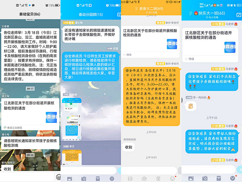 根据当前疫情防控需要,为有效阻断疫情扩散蔓延,2022年3月17日江北新区疫情防控指挥部决定在泰山街道、沿江街道、盘城街道开展核酸检测工作。我园迅速响应,开展工作部署,做到“全覆盖 无遗漏”。