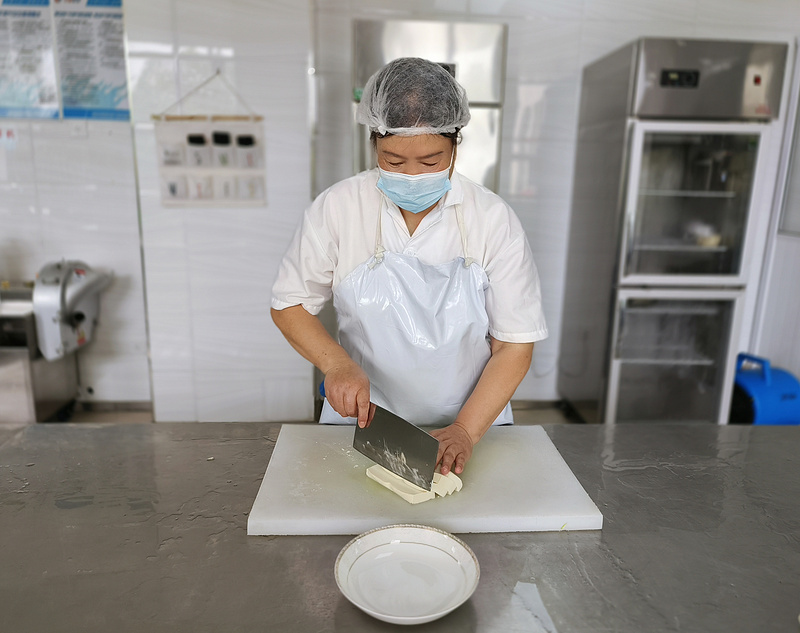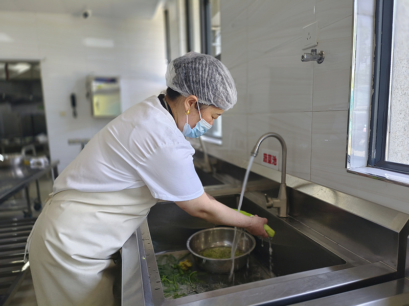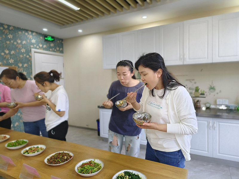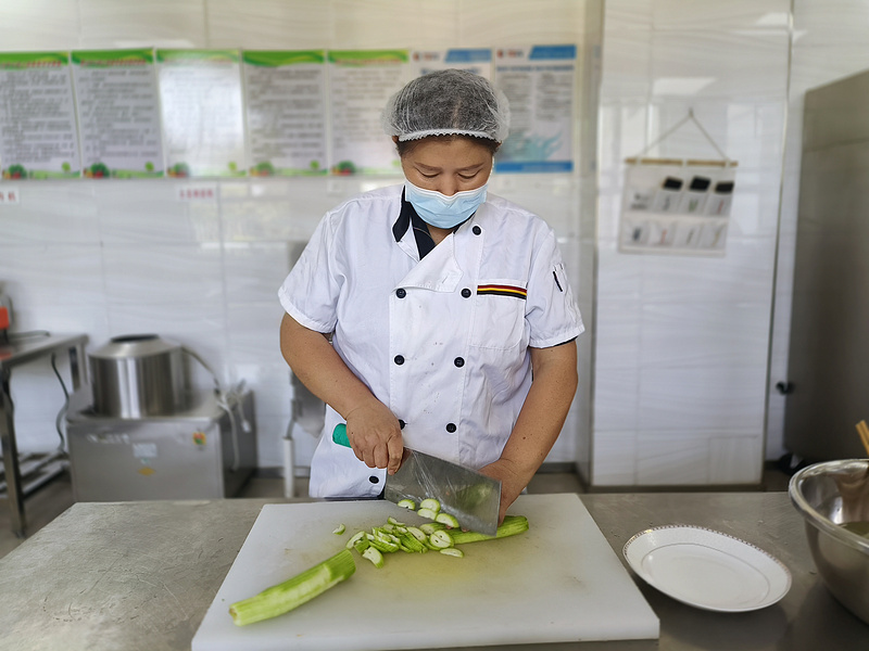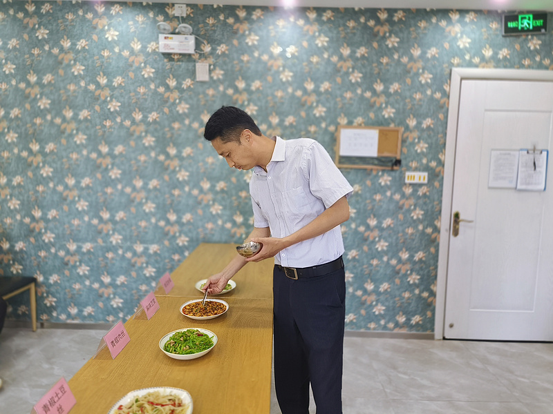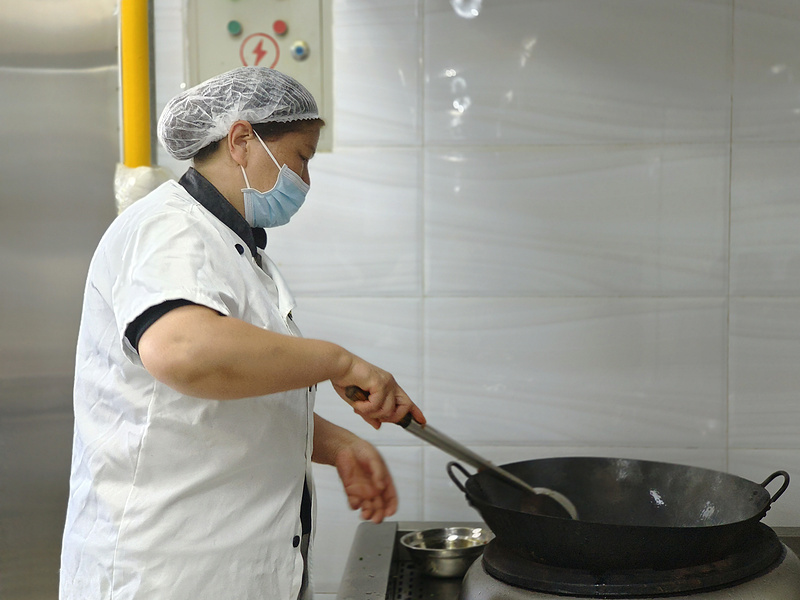 刀工作为食堂人员必修的基本功,只有夯实基础才能强化技能,而考核是衡量食堂师傳们基础功底的标准。大家提前准备好需要的食材及调料,勺子穿梭在食材上方,动作干净利落。在大火的翻滚和激荡中,不一会儿,青椒肉丝、韭菜炒鸡蛋、麻辣豆腐……陆续出炉。