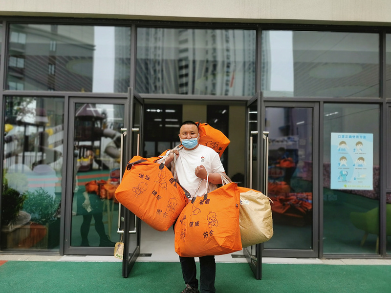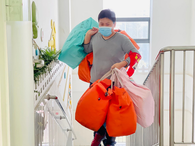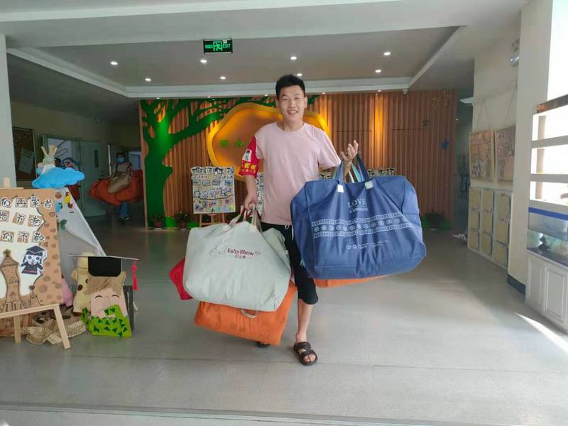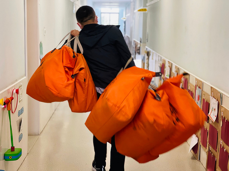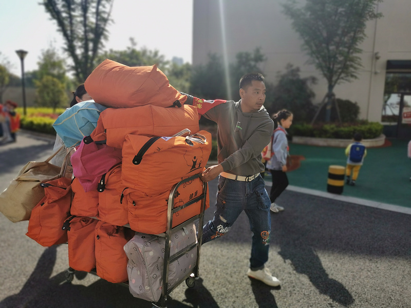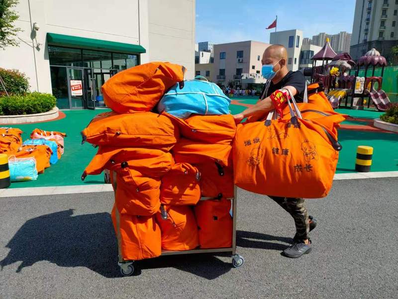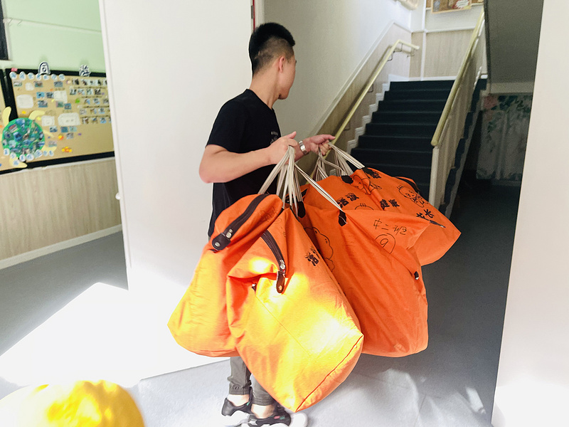 周五下午,孩子们起床后,班级教师将幼儿被褥打包完成后,“超人爸爸”搬运下楼并送往幼儿园门口指定位置,开启美好而愉快的周末生活。