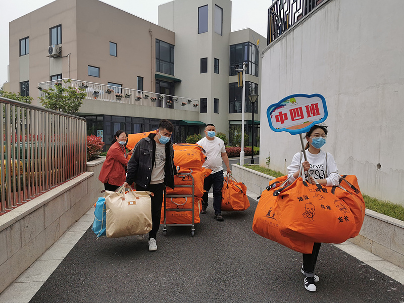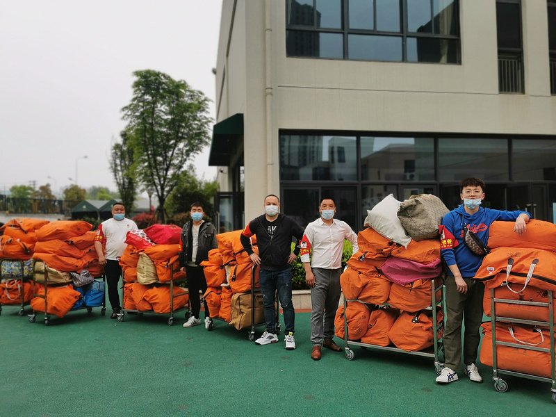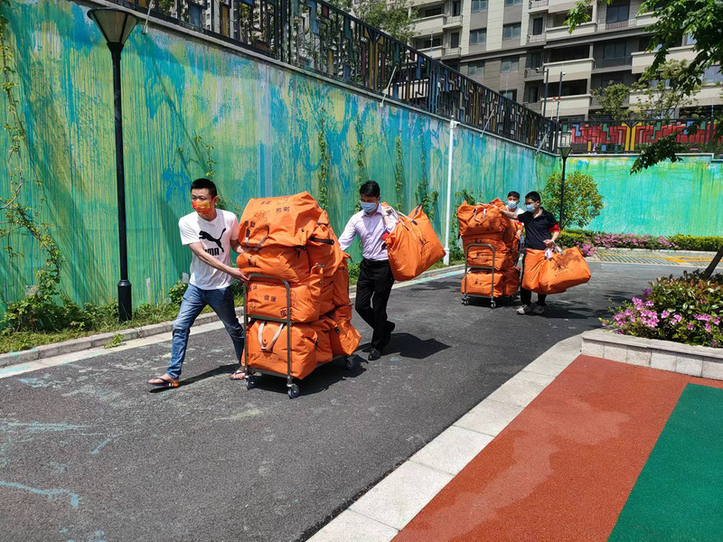 超人爸爸们你拎三四床,我推一大车,一趟又一趟地搬运着。