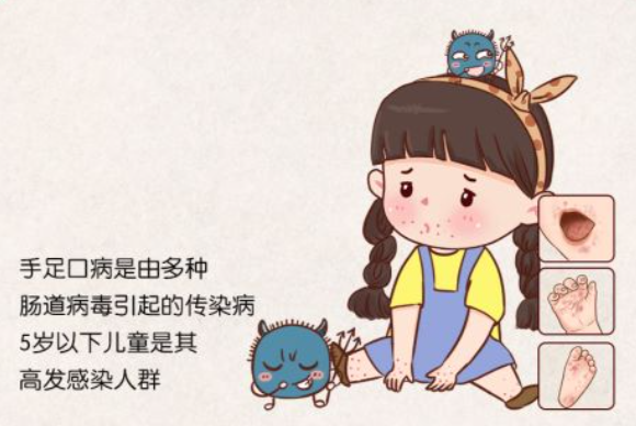 手足口病是由多种肠道病毒引起的一种常见多发传染病,多发于5岁以下儿童。全年均可发病。大多数患者症状轻微,以发热和手、足、口腔等部位的皮疹或疱疹为主要特征。易发生集体感染。手足口病可以通过粪——口或呼吸道飞沫传播,也可通过接触病人的粪便、疱疹液、呼吸道分泌物及被其污染的手、毛巾、手绢、食具、奶具、玩具、床上用品等传播。