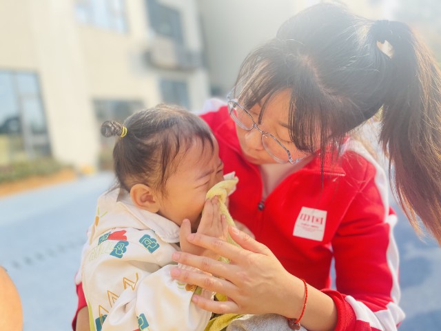哇呜……一阵啼哭声!“宝贝不怕,老师抱”