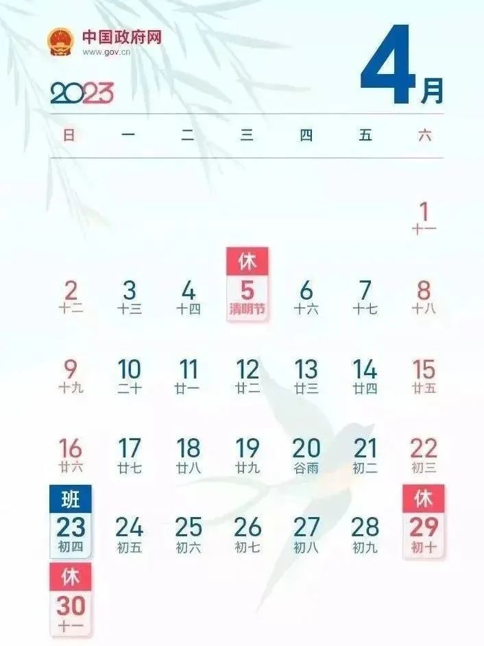 4月29日(星期六)至5月3日(星期三)放假,共5天。