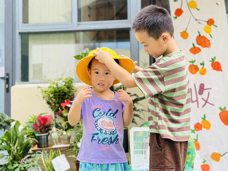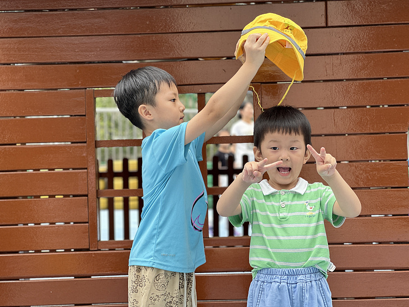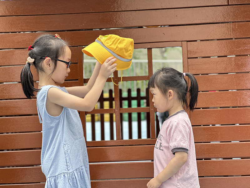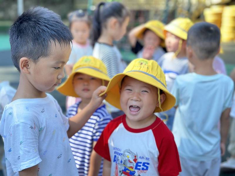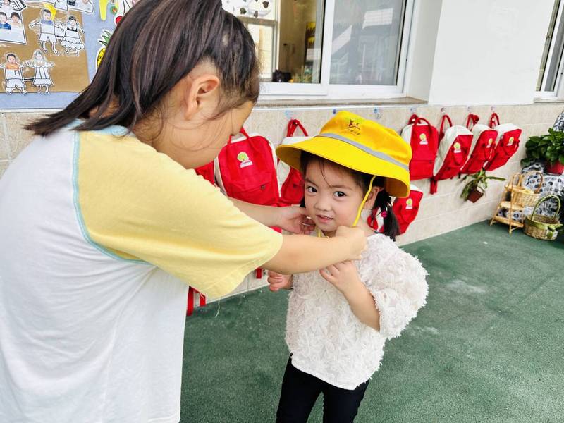 开学伊始,泰山中心幼儿园小班的宝贝们收到了一份特别的礼物——“小黄帽”,大班的哥哥姐姐争先恐后地为小班弟弟妹妹戴上小黄帽,并介绍小黄帽的神奇功能。