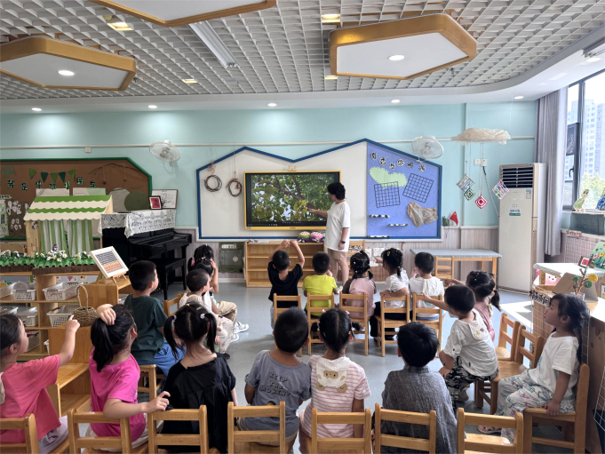 小班幼儿初次踏入幼儿园,对园内的一草一木充满好奇。孩子们在散步时被高高低低的大树吸引:“这是什么树呀?叶子黄黄的,像扇子一样”“石榴树好高啊!”这些稚嫩的问题开启了班树活动的序幕。教师们通过图片、视频和实地观察,引导孩子们认识树木的种类与特征,最终通过民主投票选定班树。例如,有的班级选择石榴树,因其“果子好吃”;有的选择樱花树,因为“花花很好看”;还有的选择乌桕,因它“直直的,像自己一样想长高”。这种自主选择的过程,增强了幼儿对班树的认同感与归属感。