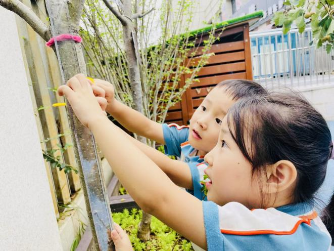 班树不仅是自然的一角,更是课程的生发点、情感的寄托者。从认领到陪伴,从探索到创造,孩子们在与班树的互动中收获了知识、能力与情感,而班树也因他们的呵护愈发茁壮。未来,我们将继续延续这份与自然的对话,期待更多故事在树下悄然生长……