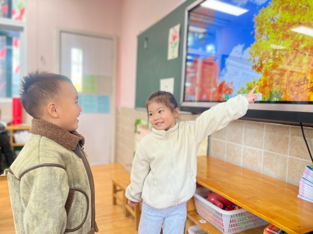 晴朗的秋日里,孩子们的欢声笑语与或红或绿的秋叶交织在一起,是难得的好时光,也是别样的风景画。