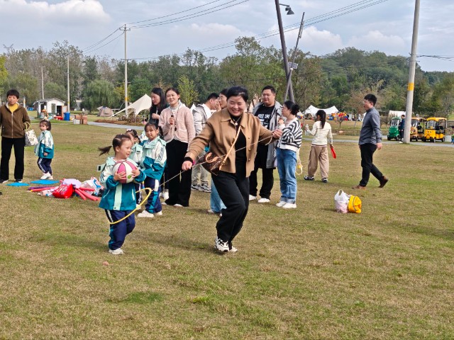 精彩的亲子游戏将秋游推向了高潮。“蚂蚁运球”、“活力接力赛”……一个个精心设计的游戏,考验着亲子间的默契与协作。赛场上是精彩激烈的角逐,赛场下是阵阵加油与欢笑,在合作与互动中,亲子情感迅速升温,快乐洋溢在每个人的脸上。