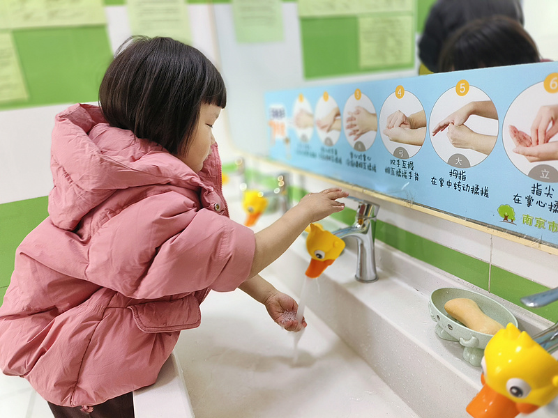 入园后先洗手,七步洗手法认真洗手,让“正确洗手”成为每个孩子的自觉习惯,最大程度减少交叉感染的风险。