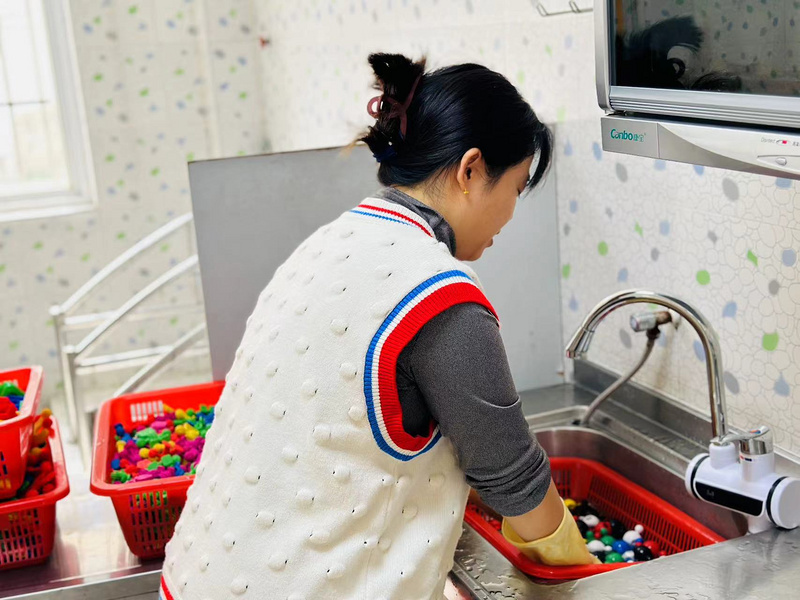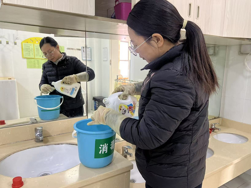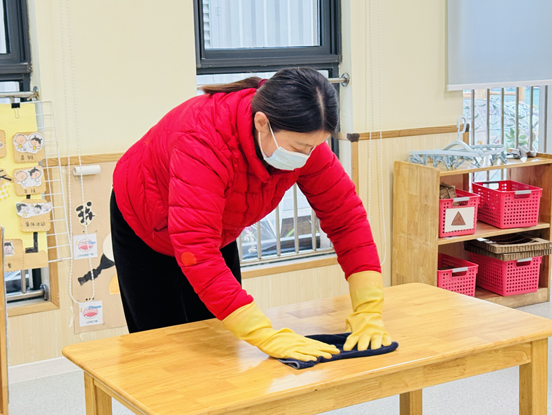 餐前消毒确保幼儿饮食安全,保育老师们严格按照“清-消-清”的规范流程进行消毒。