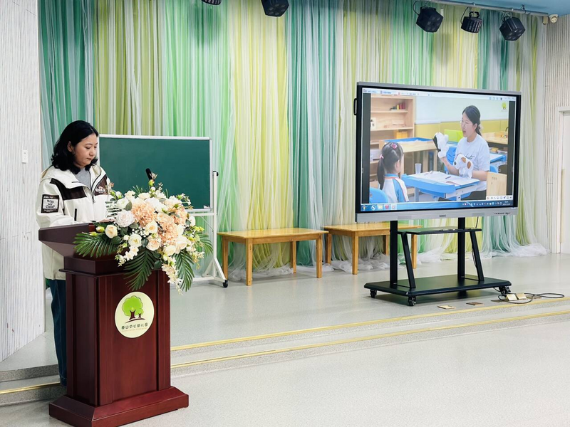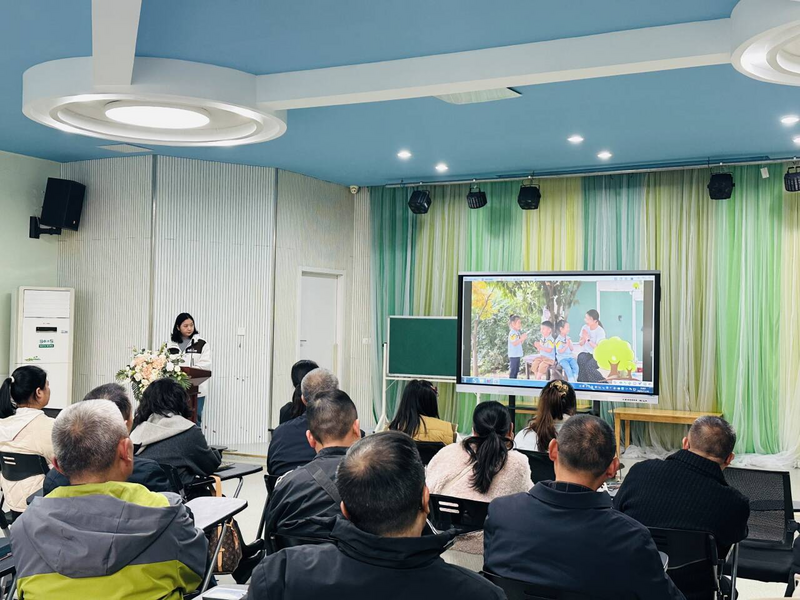 下午4时,活动在幼儿园多功能厅正式启动,首场环节为融合教育工作经验汇报。负责园所融合教育工作的王董香副园长以《融合赋能,携手同行》为题,结合园所七年实践经验,从基本情况、发展历程、实践路径三方面展开分享。汇报中,王董香副园长介绍了园所作为省优质幼儿园的办学基础与融合教育荣誉,梳理了从启动实践到科研引领、再到课程调适的发展脉络,并重点讲解了特需幼儿“入园衔接-教育评估-个性化支持”的全流程服务机制。现场还播放了园所融合教育宣传视频,直观呈现特需幼儿的学习生活场景,引发在场教师的关注与共鸣。