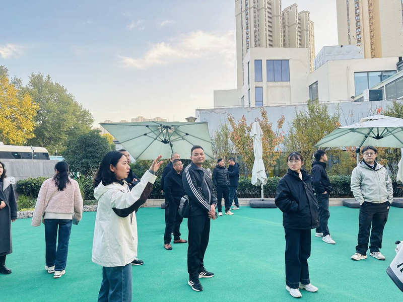 参观环节结束后,全体参会人员移步校园标志性景观前合影留念。秋日的暖阳下,大家面带笑容并肩而立,相机定格下这场跨区域教育交流的珍贵时刻。合影时,涟水县教师代表与泰山中心幼儿园团队相互致谢,传递出对此次交流的认可与未来合作的期待。教师们提问互动,实现理论与实践结合。