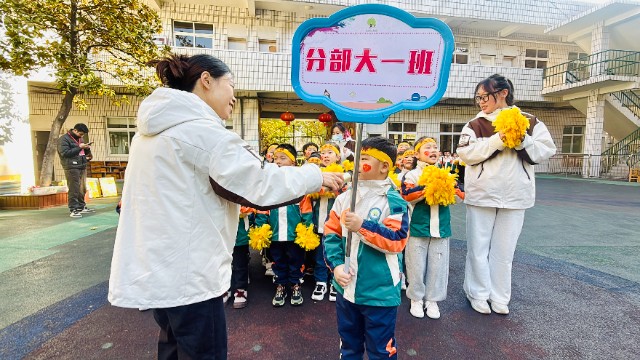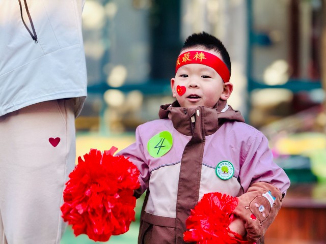 运动会当天,入场式率先点燃全场。小朋友们手拿花球,精神抖擞,斗志昂扬,稚嫩的小脸上洋溢着自信的微笑。