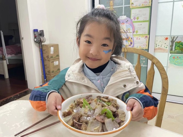 “洋葱炒鸡蛋是我的最爱,啊呜啊呜真好吃!”