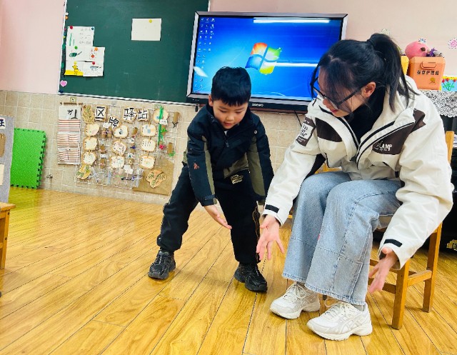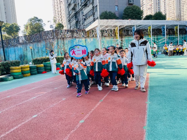 啦啦操环节,全园师幼共舞。音乐响起,老师们带领孩子伸展手臂、扭动腰肢,“小手像小鸟翅膀一样张开,飞起来啦!”老师的口令充满童趣,温暖的互动让冬日的操场暖意融融。